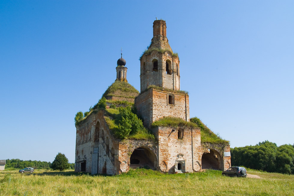Фотографии, особенно летние, Успенского собора Боровенского монастыря (N54°28.791′, E35°09.712′) – очень впечатляют! Красивый, очень большой – на кадрах до 2014 года он всё-ещё выглядел заброшенным. Стоит одиноко, два больших симметричных входа на второй этаж храма, обнявших колокольню, преграждает только трава. Которая, собственно, зелёным ковром застелила всю кровлю храма. Вот, для примера — http://www.geocaching.su/photos/areas/25520.jpg. Последнее сообщение гласило: «Висит табличка внутрь не входить». Всего лишь табличка – маленький знак, который не должен был помешать сделать свой-собственный аналогичный кадр. Решили рискнуть — может еще вокруг не успели ничего построить, закрыть, завесить.